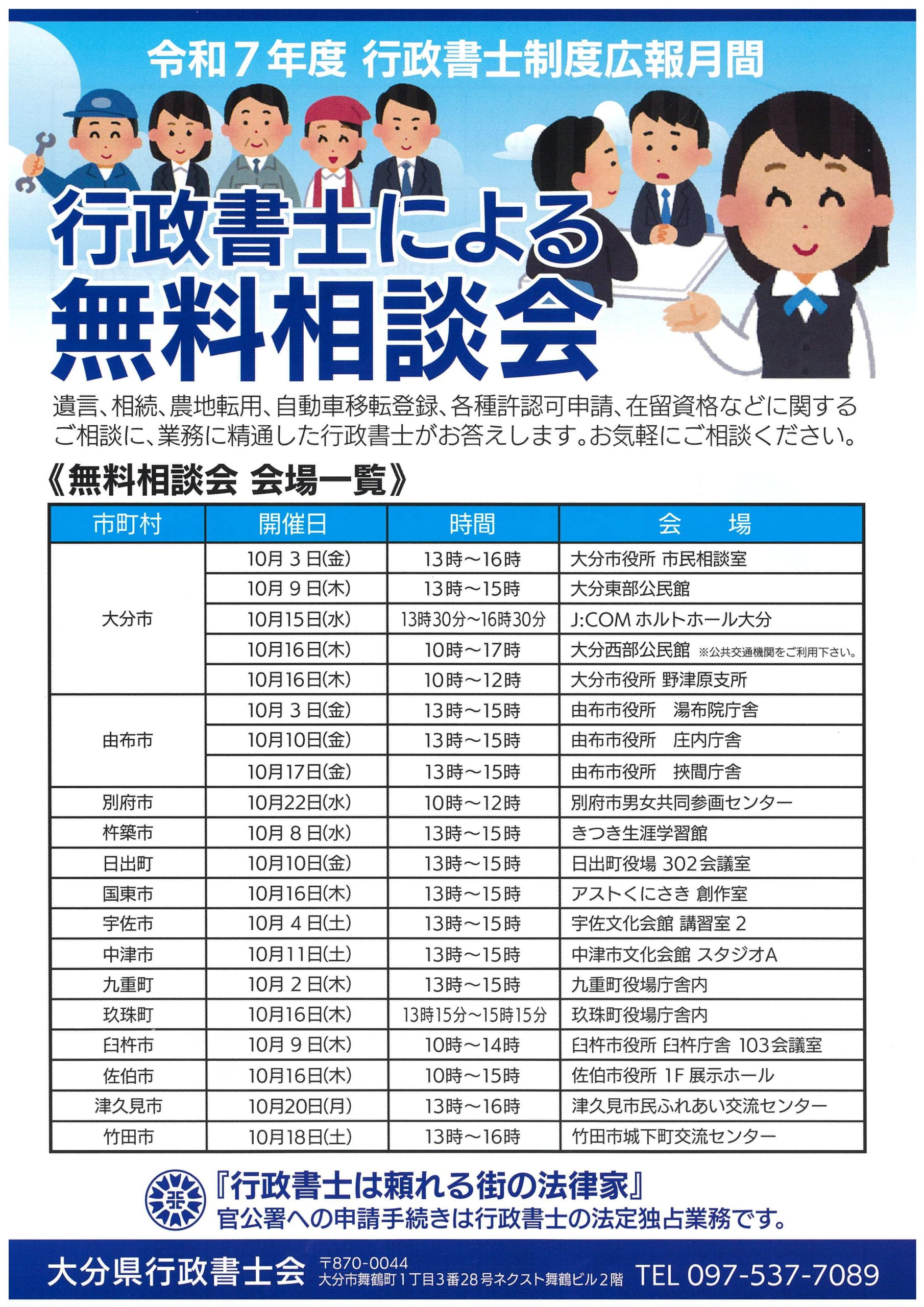 お問い合わせ:097ー537ー7089(大分県行政書士会事務局)